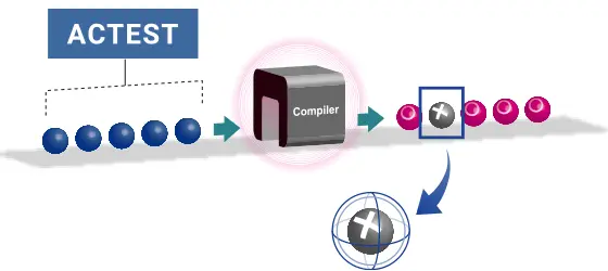 人間が書いたプログラムをコンピューターが実行できるように変換するシステムが「コンパイラ」です。お客様に代わってコンパイラの品質検査を行い、不具合の発生を防ぎます。日本ノーベル独自の検証サービスとして多くのお客様から支持を集め、グローバルシェアNo.1へと成長しました。