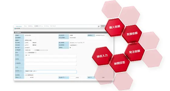 資材調達や部品・備品の発注など、購買業務をWebブラウザ上で円滑に行えるシステムです。intra-mart をベースとしたWeb購買システムとして、業界職種に関係なく、数多くの企業に導入実績があります。