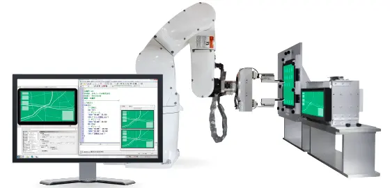 携帯電話・カーナビ・タッチパネル・デジタル家電などの組込みソフトウェアのテストを自動化するシステムです。ロボットによる確実な操作と、カメラを使った正確な画像判定で、従来人手で行っていた何千回、何万回と繰り返すようなテスト作業を自動化。人々はよりクリエイティブな操作に集中できるようになり、作業の効率化に貢献します。