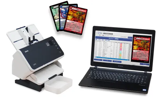 トレーディングカードの絵柄を自動識別し、データベースから相場買取価格を取得するシステムです。(日本ノーベル自慢の画像処理技術が使われています!)斜めに読み込まれた画像や、光沢のあるホログラムカードといった難条件でも99%以上の精度で判定します。誰でも・効率よく・正確にトレカの買取作業を行うことが出来るシステムとして、全国のリサイクルショップやカード専門店で日々活躍しています。