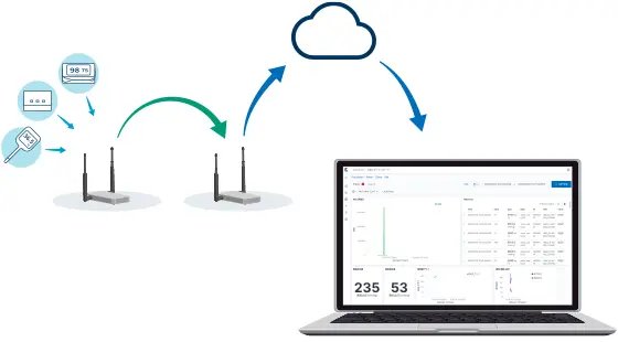 計測機器とクラウドをつなぎ、クライアント専用のIoT環境を構築するシステムです。市販の体温計や血圧測定器などのデータにも対応しており、病院などで患者の生体データを自動収集することに役立っています。外部と通信できない広大なエリアからのデータ収集も可能です。